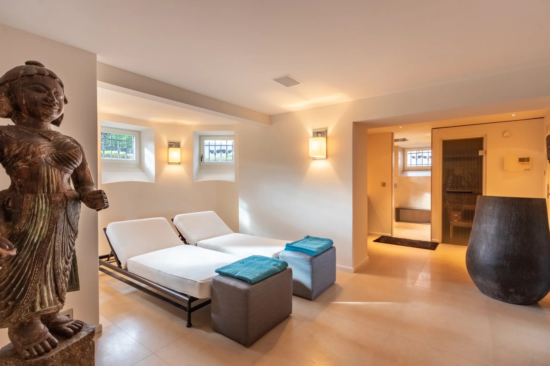 - Spa-Bereich mit Sauna, Fitnessraum und Nasszelle inkl. WC